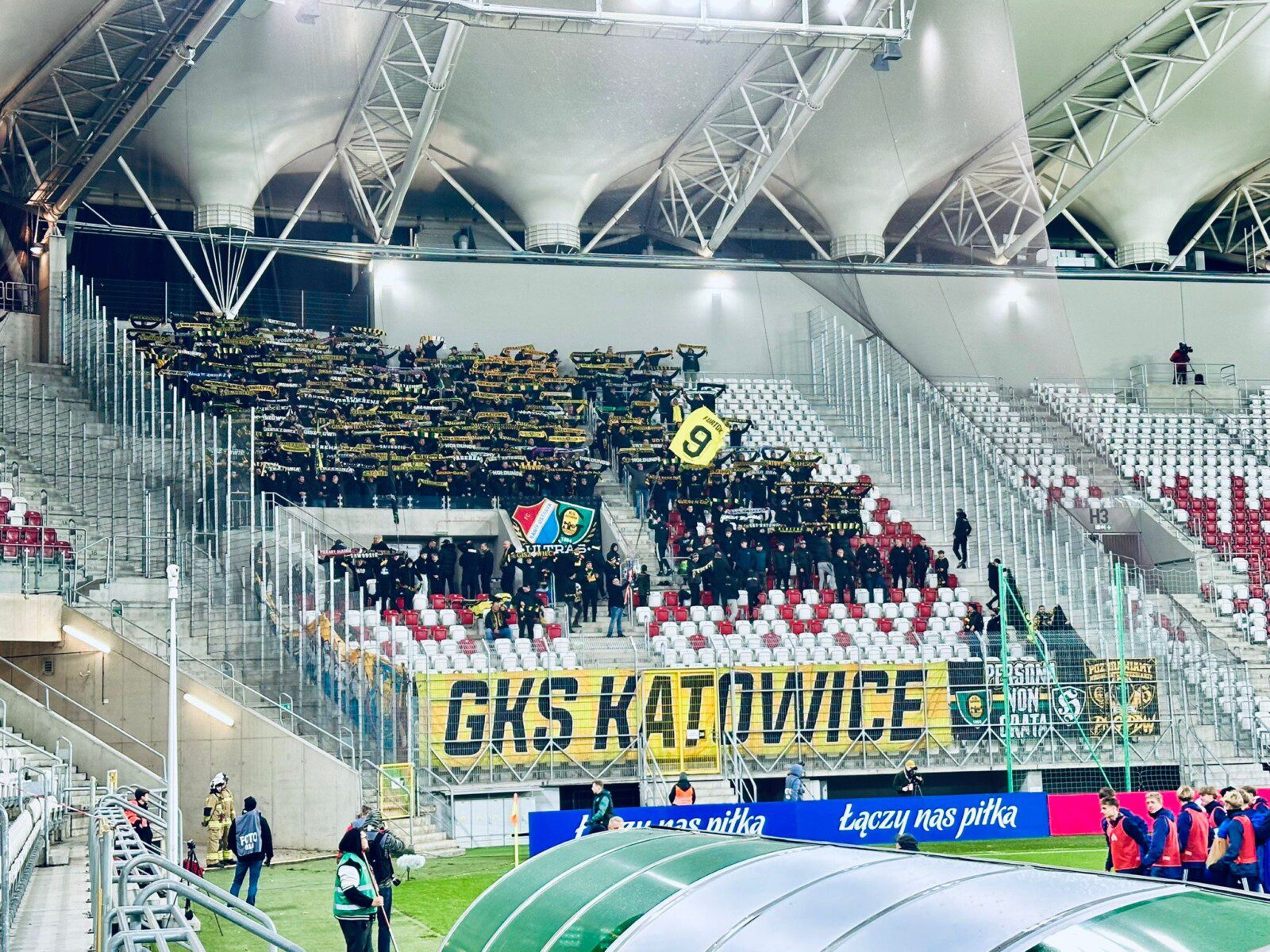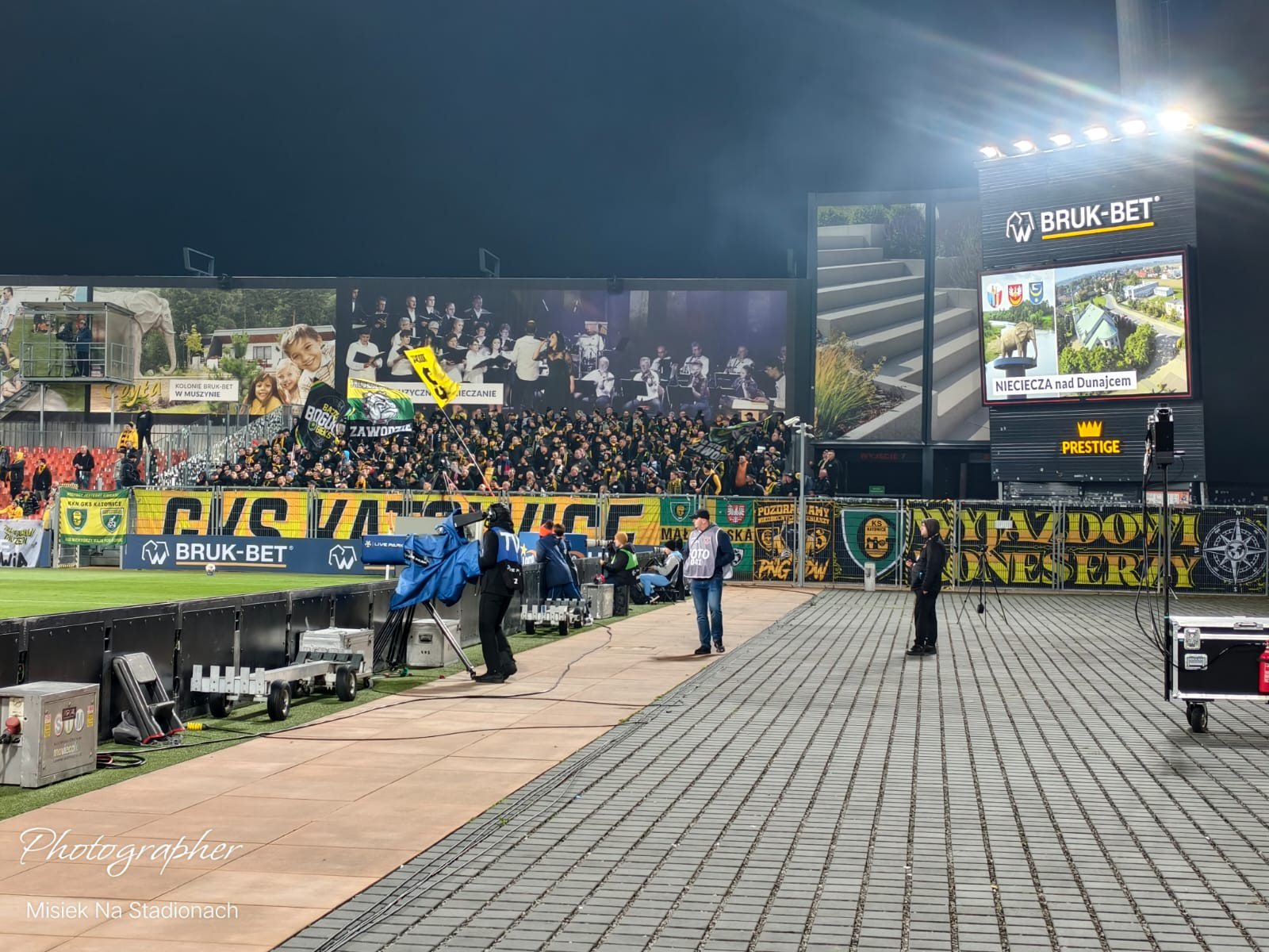 I znowu piątek… Tym razem w Niecieczy, w której w ostatnich latach często bywaliśmy. Pojawiliśmy się w 427 osób, w tym 2 Górnik Zabrze i 2 JKS Jarosław. Tym samym zakończyliśmy maraton pięciu wyjazdów z rzędu w tygodniu roboczym.