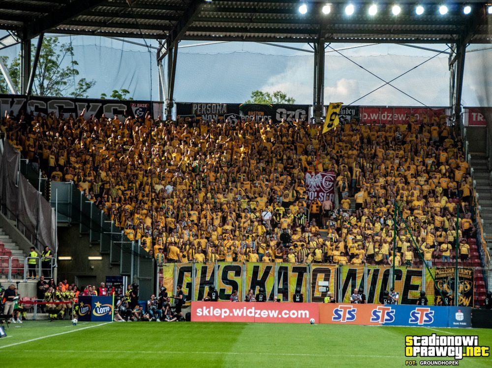 Kolejny wyjazd wypadł… we wtorek. Los skrzyżował nas z ŁKS w Pucharze Polski. Ostatni raz byliśmy na tym stadionie (zupełnie niepodobnym do obecnego) w 2010 roku, bo choć w sezonie 2011/2012, 2012/2013, 2018/2019, 2021/2022 i 2022/2023 graliśmy na wyjazdach z ŁKS, to za każdym razem „coś” przeszkadzało w obecności kibiców GieKSy (zakazy stadionowe, remonty stadionu itd.). Po 15 latach pojawiliśmy się w 507 osób, w tym 11 Banik Ostrava, 4 Górnik Zabrze i 1 JKS Jarosław.