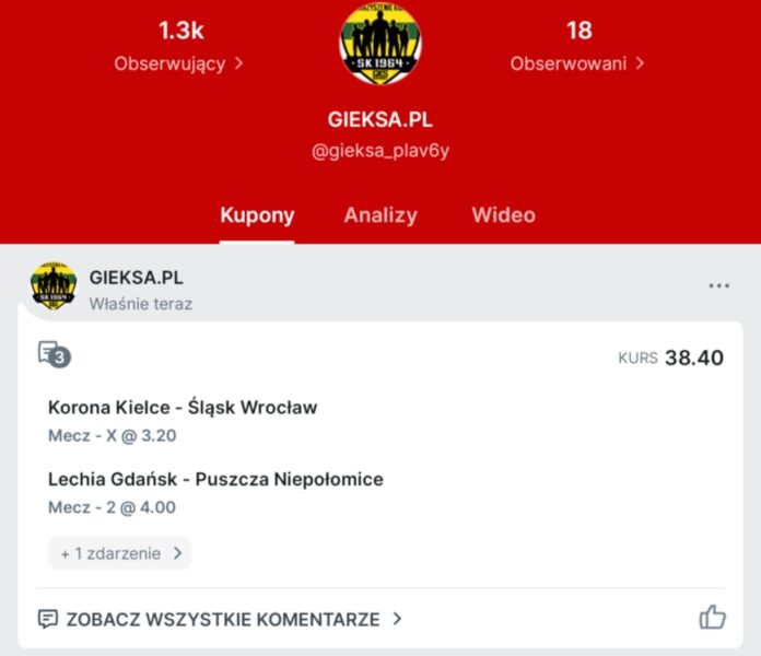 Podopieczni Rafała Góraka mają na swoim koncie serię pięciu ligowych meczów bez porażki, którą będą chcieli kontynuować w Lublinie. Katowiczanie wiosną pokonali 1:0 Stal, 2:1 Raków, a ostatnio zremisowali bezbramkowo z Piastem. GKS w dalszym ciągu ma pewne miejsce w środku tabeli z przewagą 9 punktów nad strefą spadkową i stratą 10 punktów do ligowego podium. Motor ostatnią wygraną zanotował jeszcze w grudniu, wiosną zremisował 1:1 z Lechią i przegrał 0:1 z Koroną i 0:3 z Jagiellonią. Lublinianie mają 1 punkt mniej niż GieKSa. Zdaniem bukmacherów faworytem jest Motor. Kurs na zwycięstwo Motoru 2,40. Kurs na remis 3,50. Kurs na wygraną GieKSy 3,00.
