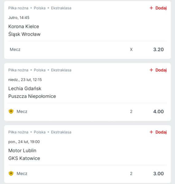 Korona całkiem nieźle rozpoczęła wiosenne granie, na początek zremisowała 1:1 z Legią, później wygrała 1:0 z Motorem, a ostatnio zremisowała 1:1 z Cracovią. Kielczanie na ten moment są na 12. miejscu w tabeli, ale mają tylko 2 punkty przewagi nad strefą spadkową. Śląsk w dalszym ciągu jest na samym dnie ligowej tabeli i do bezpiecznego miejsca traci aż 7 punktów, jednak wyniki ekipy z Wrocławia wyglądają coraz lepiej. Na start wiosny Śląsk przegrał 1:3 z Piastem, zremisował 1:1 z Radomiakiem, a w ostatniej kolejce wygrał 3:0 z Widzewem. Kurs na wygraną Korony 2,40. Kurs na remis 3,20. Kurs na tryumf Śląska 3,20.