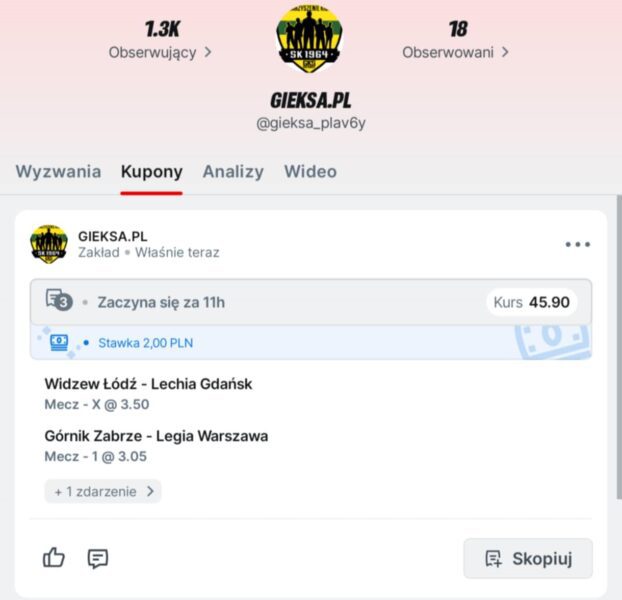Przez tyle lat czekaliśmy na Puchar Polski jak na okno do Ekstraklasy z nadzieją, aby uchyliło się chociaż odrobinę i pozwoliło oddychać tym samym powietrzem co krajowa elita… Dzisiaj tuzy Ekstraklasy otwierają listę drużyn, z którymi nie chcemy grać na tym etapie. To najlepszy dowód na to, jaki skok wykonaliśmy przez ostatnie dwa lata: nomen omen lata świetlne! Z uwagi na zależności rodzinne (kuzyni z Dolnego Śląska kibicujący Śląskowi) najbardziej chciałbym trafić Śląsk na wyjeździe. U siebie zdążyliśmy zagrać i razem z kuzynami oglądaliśmy to „widowisko” na starej Bukowej. We Wrocławiu z uwagi na Święta nie mieliśmy szans się spotkać. Poza tym z uwagi na cykl „Okiem rywala” łapię kontakt z przedstawicielami innych klubów – z jednymi gorszy, z drugimi lepszy i czasem wbijamy sobie różne szpilki 😉 Tym kluczem chciałbym trafić na Widzew (pozdrawiam Michał) lub Koronę (piona Michał i marxokow). Górnik za to dopiero w finale, najlepiej na Śląskim, bo 3 maja córka ma komunię, więc logistyka byłaby łatwiejsza 😂 Rywali z niższych lig trochę się boję, z uwagi na stan boiska w grudniowe popołudnie, ale bytomski orlik powinien być wtedy jak najbardziej zdatny do użytku 😜 Tak czy inaczej, sam fakt, że w listopadzie rozmawiamy jeszcze o GieKSie w Pucharze Polski jest dla mnie powodem do uśmiechu. Czas na kolejny krok w stronę Narodowego.