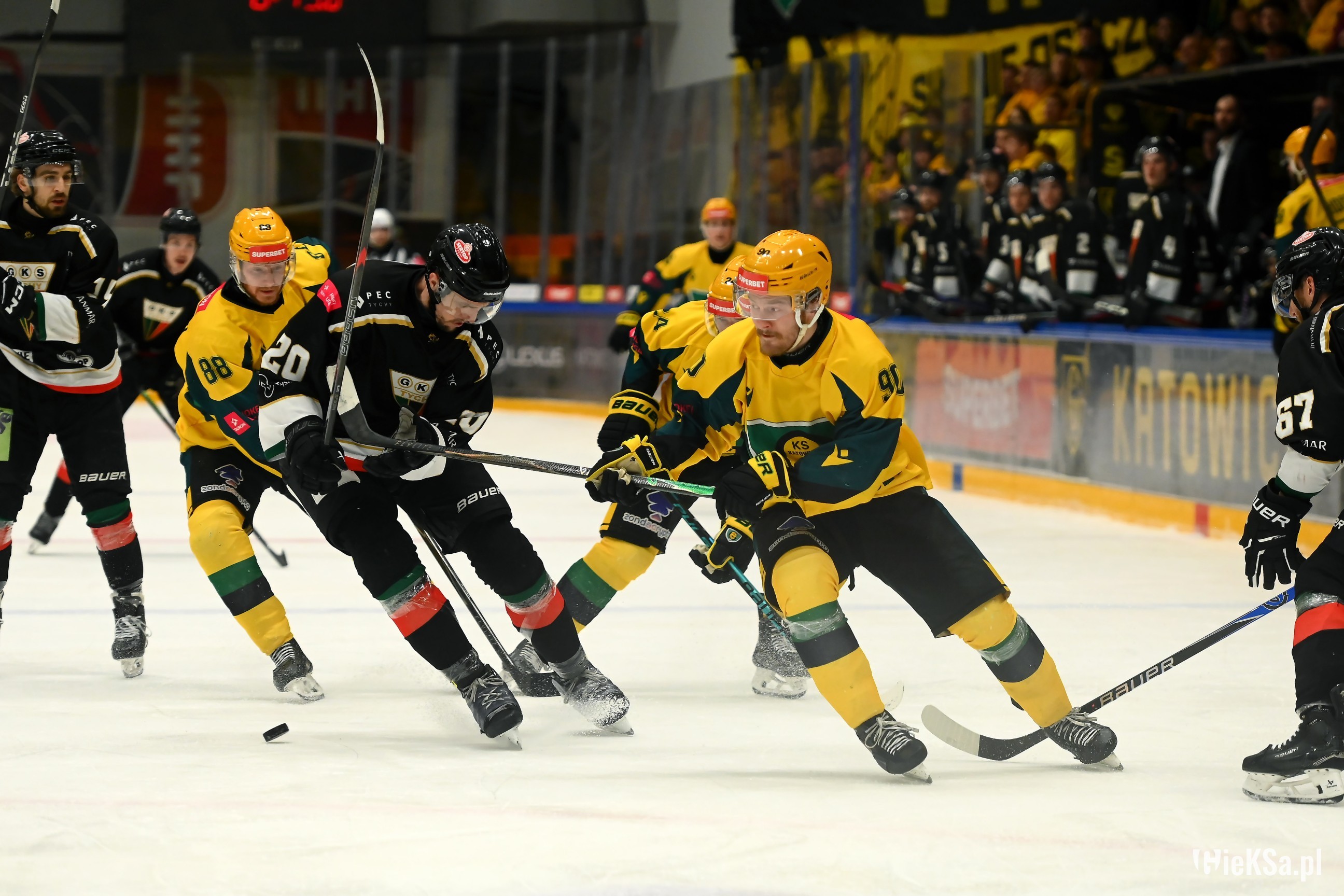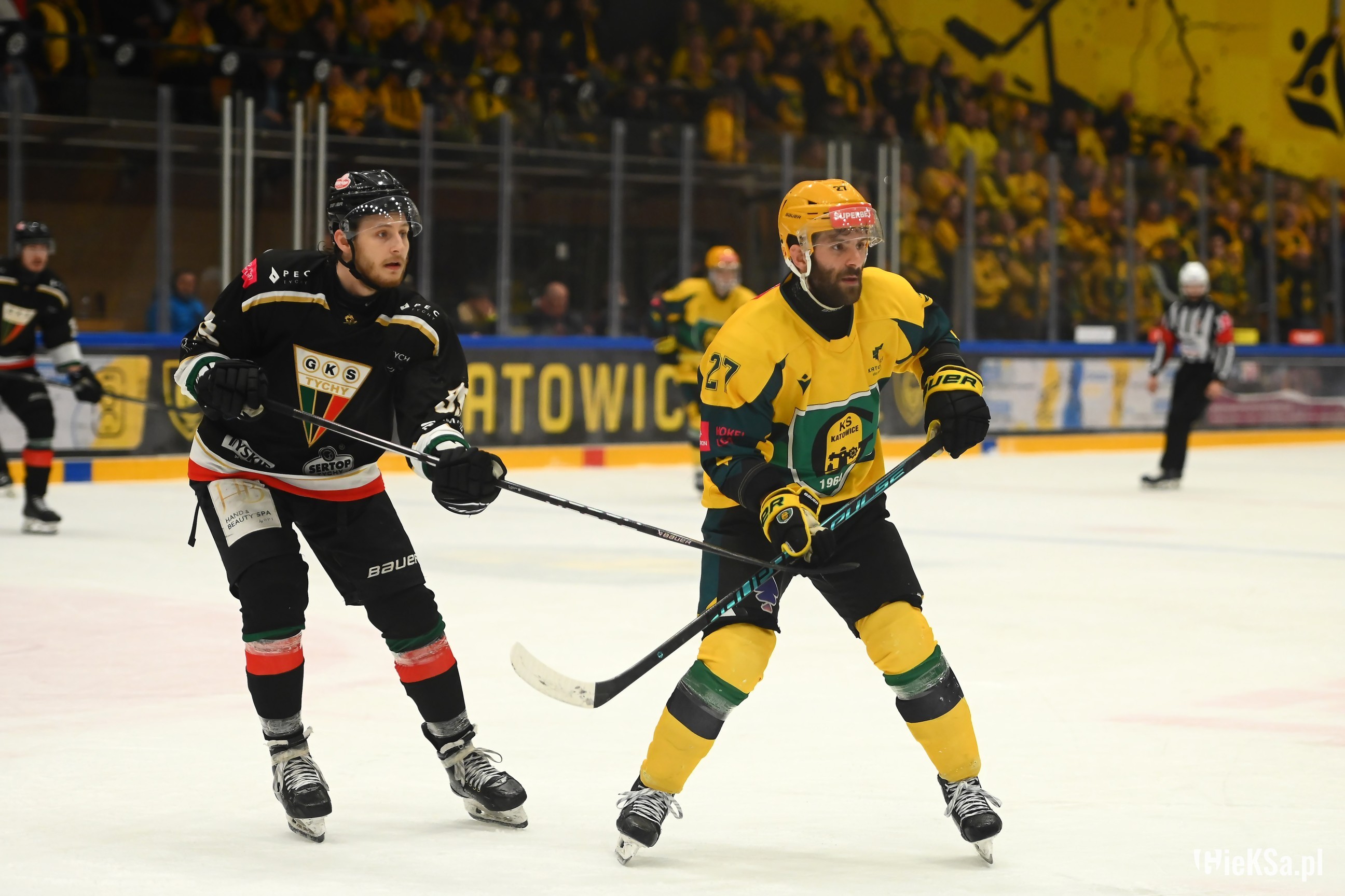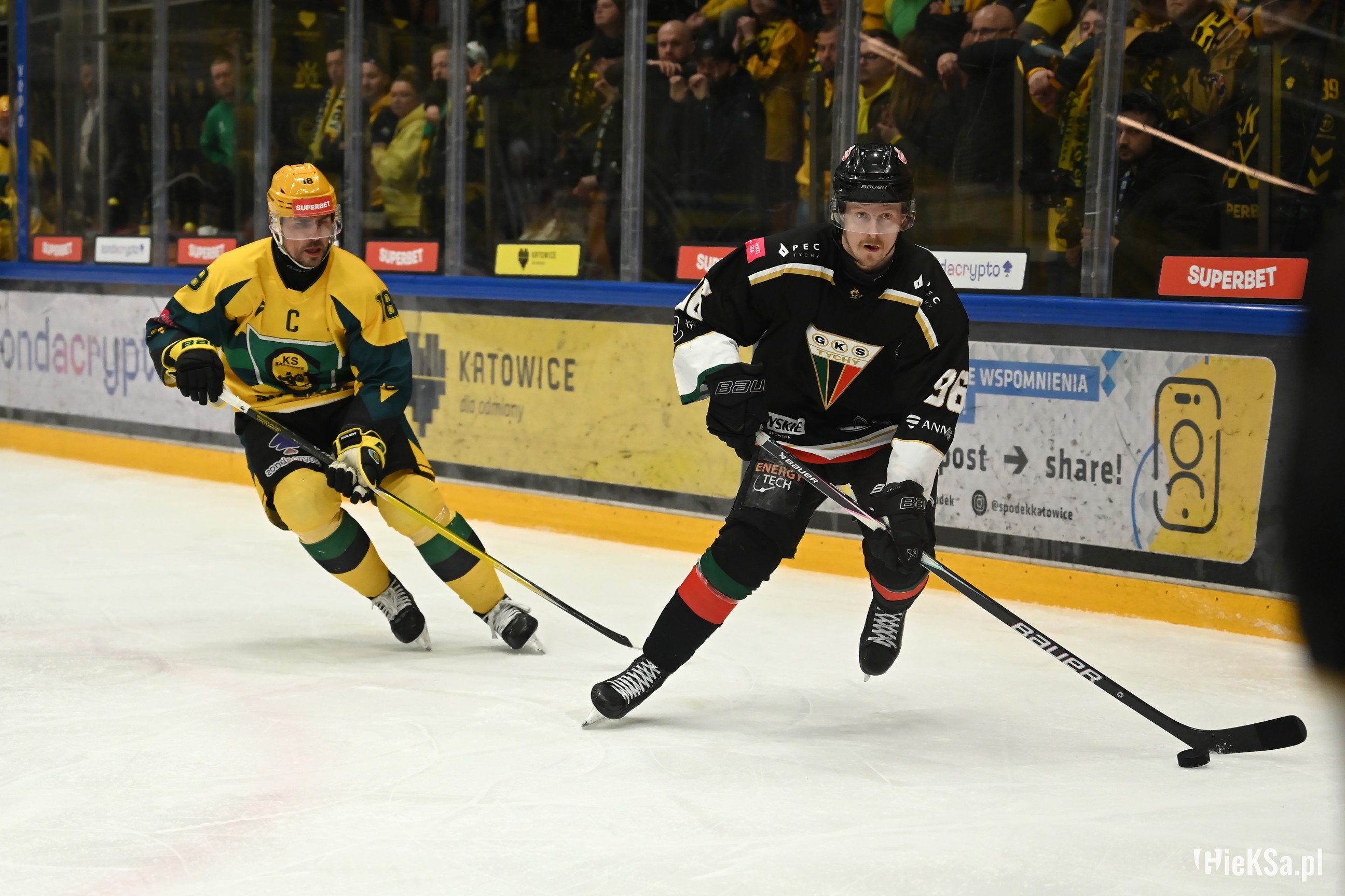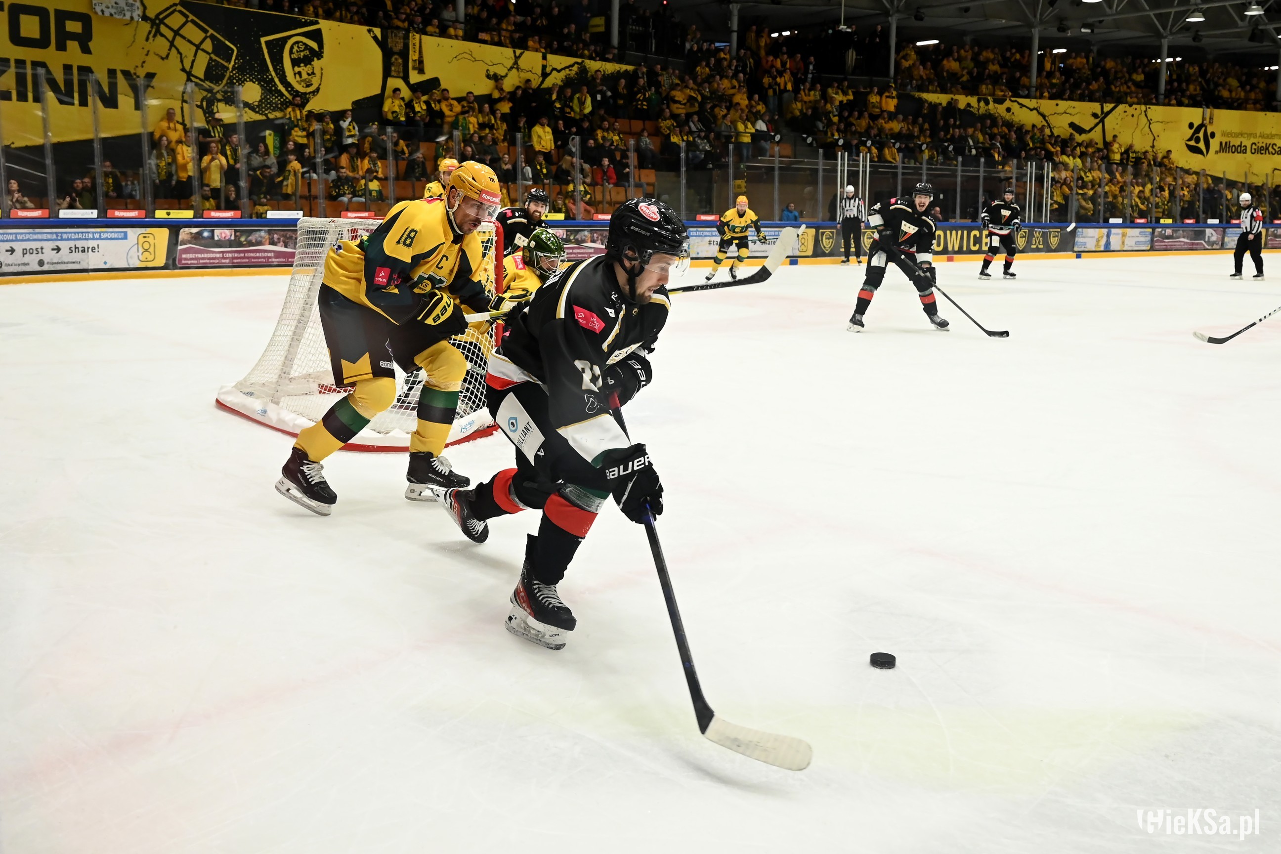 17. Kibice Jagi bardzo głośno dopingowali, Katowiczanie na sektorze gości też odgryzali się, mimo, że byli w liczbie niemal czterokrotnie niższej niż w listopadzie na niedoszłym meczu.