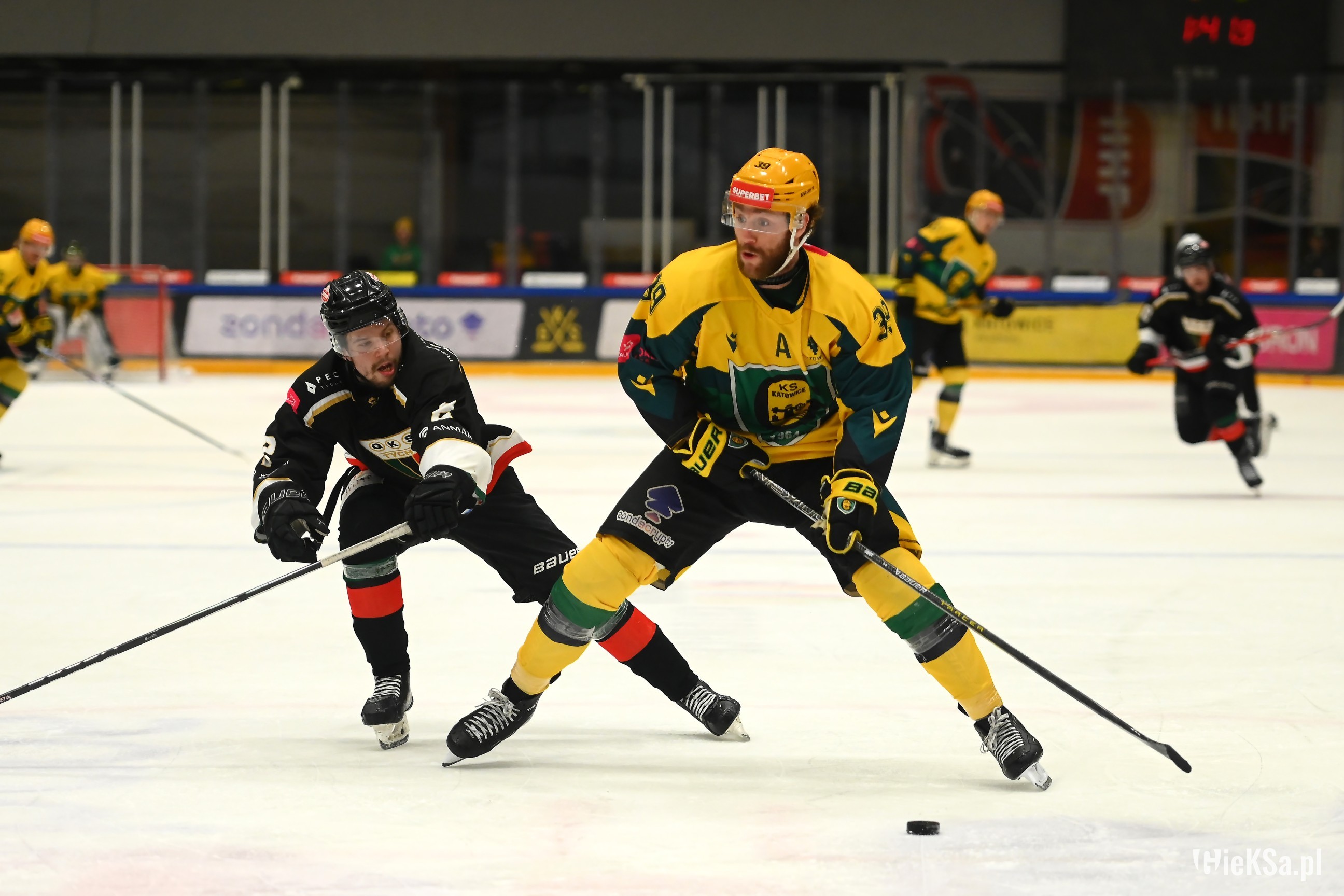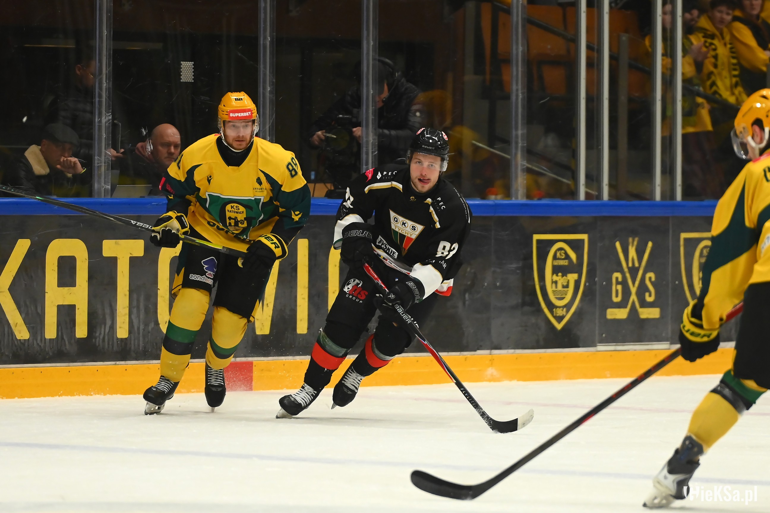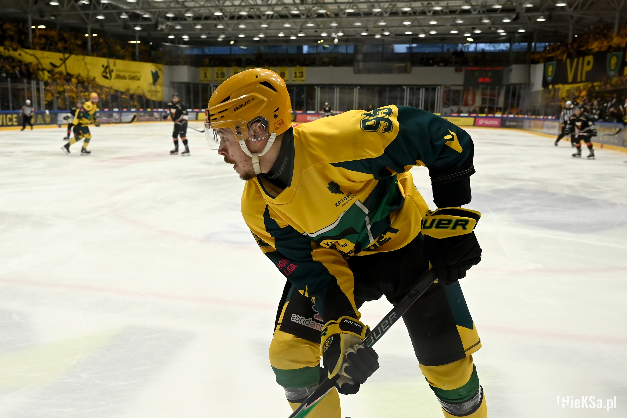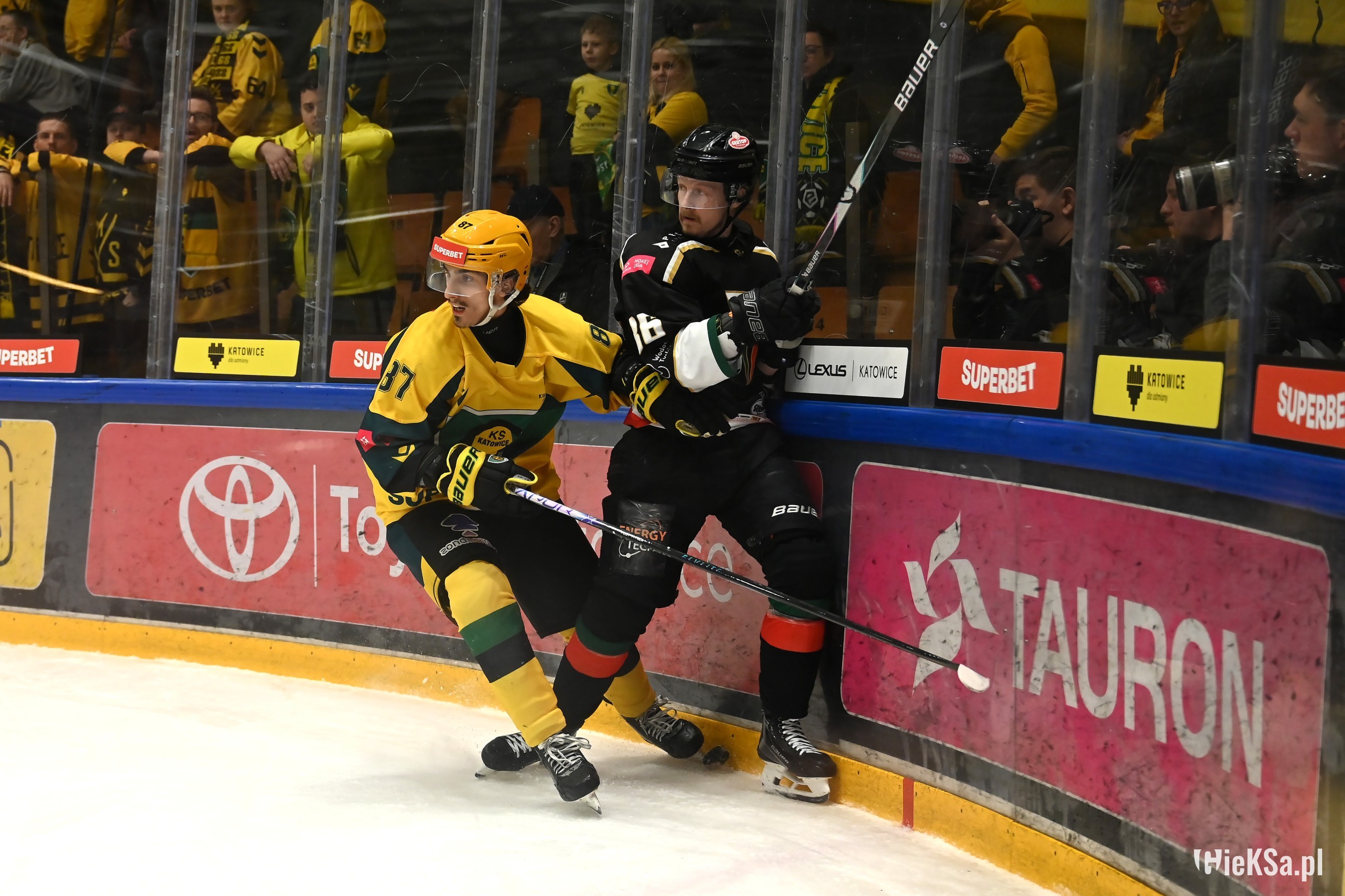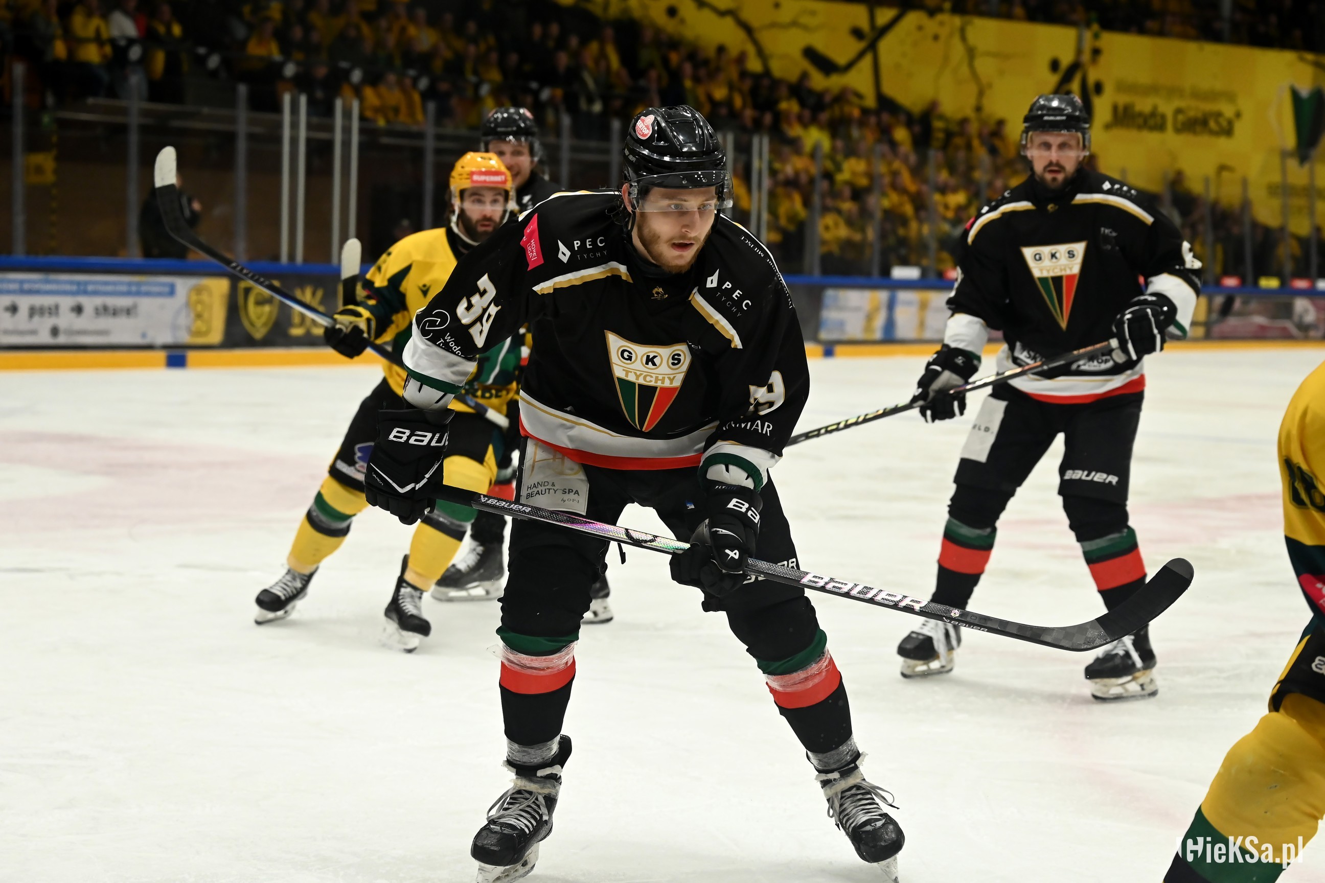 17. Kibice Jagi bardzo głośno dopingowali, Katowiczanie na sektorze gości też odgryzali się, mimo, że byli w liczbie niemal czterokrotnie niższej niż w listopadzie na niedoszłym meczu.