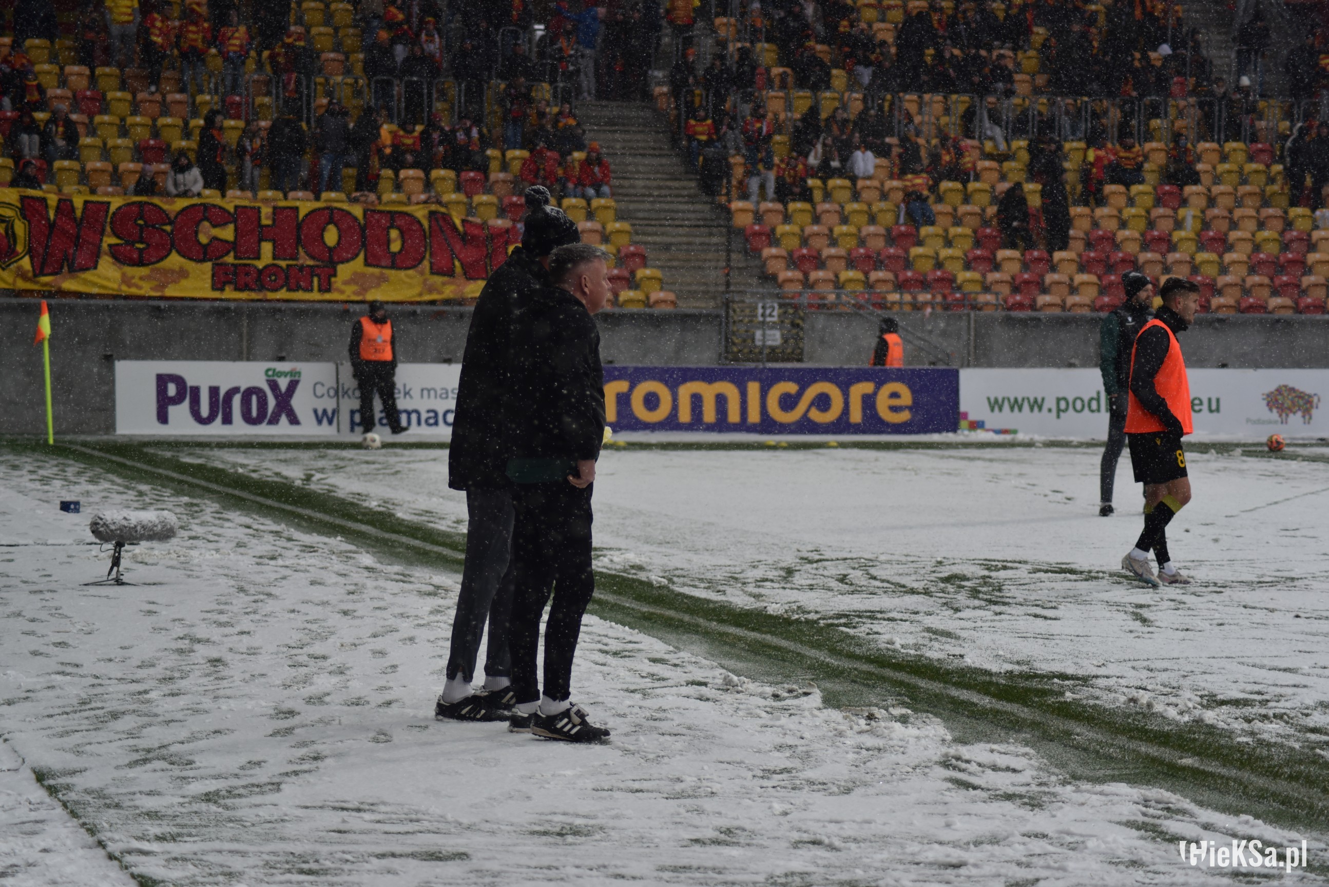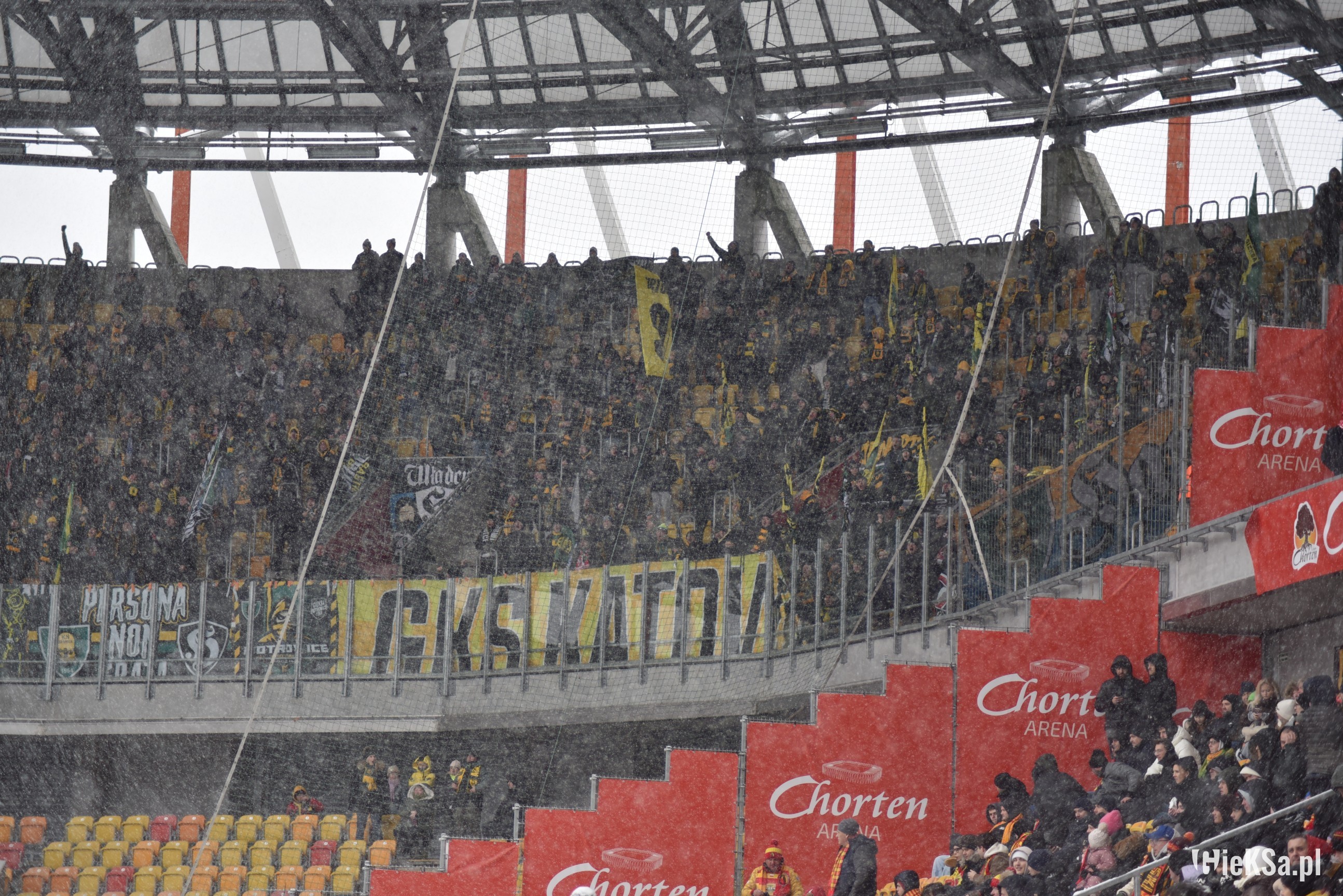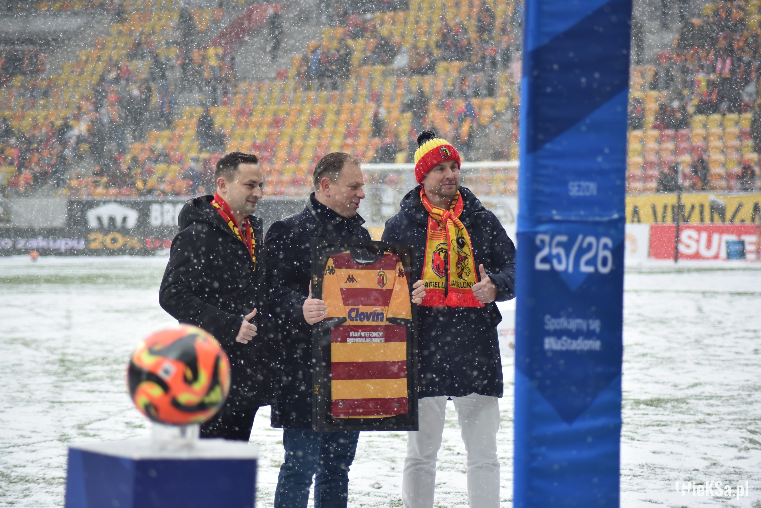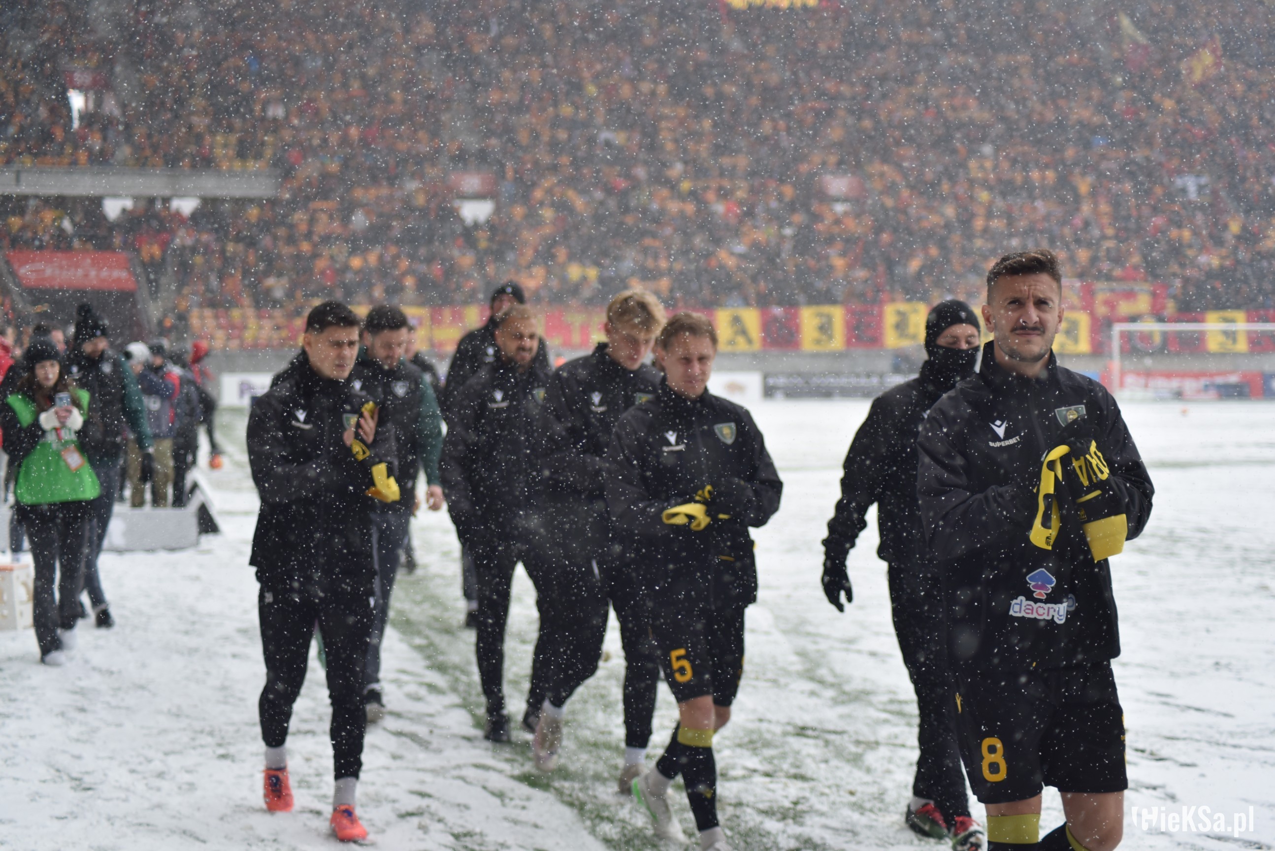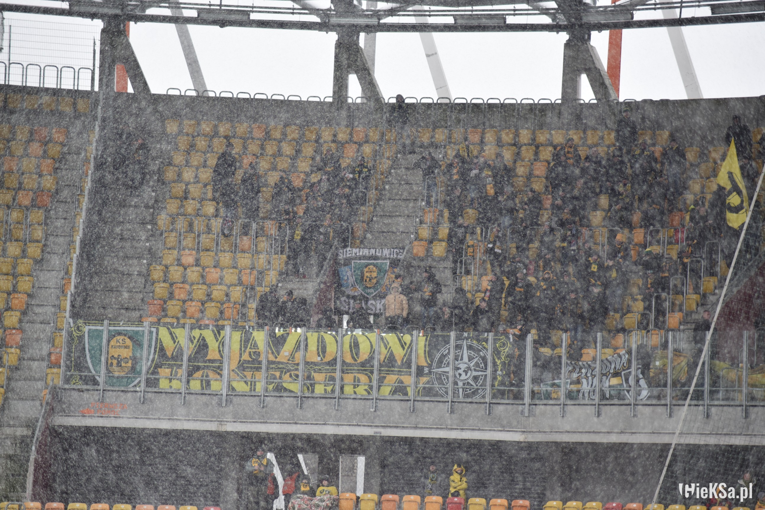 Zapraszamy do zimowej galerii z odwołanego meczu GieKSy z Jagiellonią w Białymstoku. Piłkarze GKS Katowice po decyzji o tym, że nie będzie spotkania, podeszli pod szczelnie wypełniony sektor gości i podziękowali fanom z Katowic za tak liczne stawienie się na meczu. Przy okazji podarowali swoje koszulki najmłodszym wyjazdowiczom.