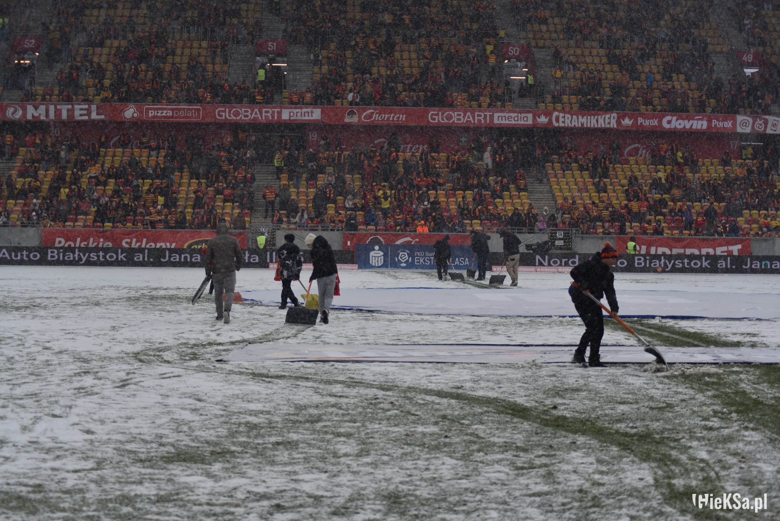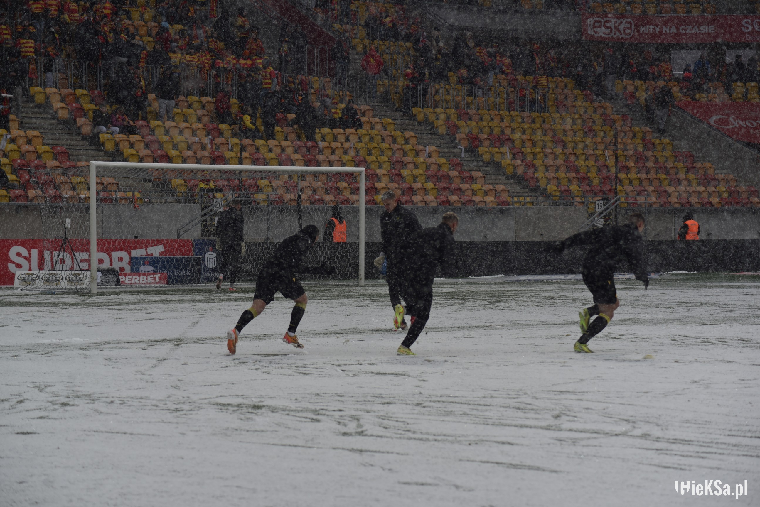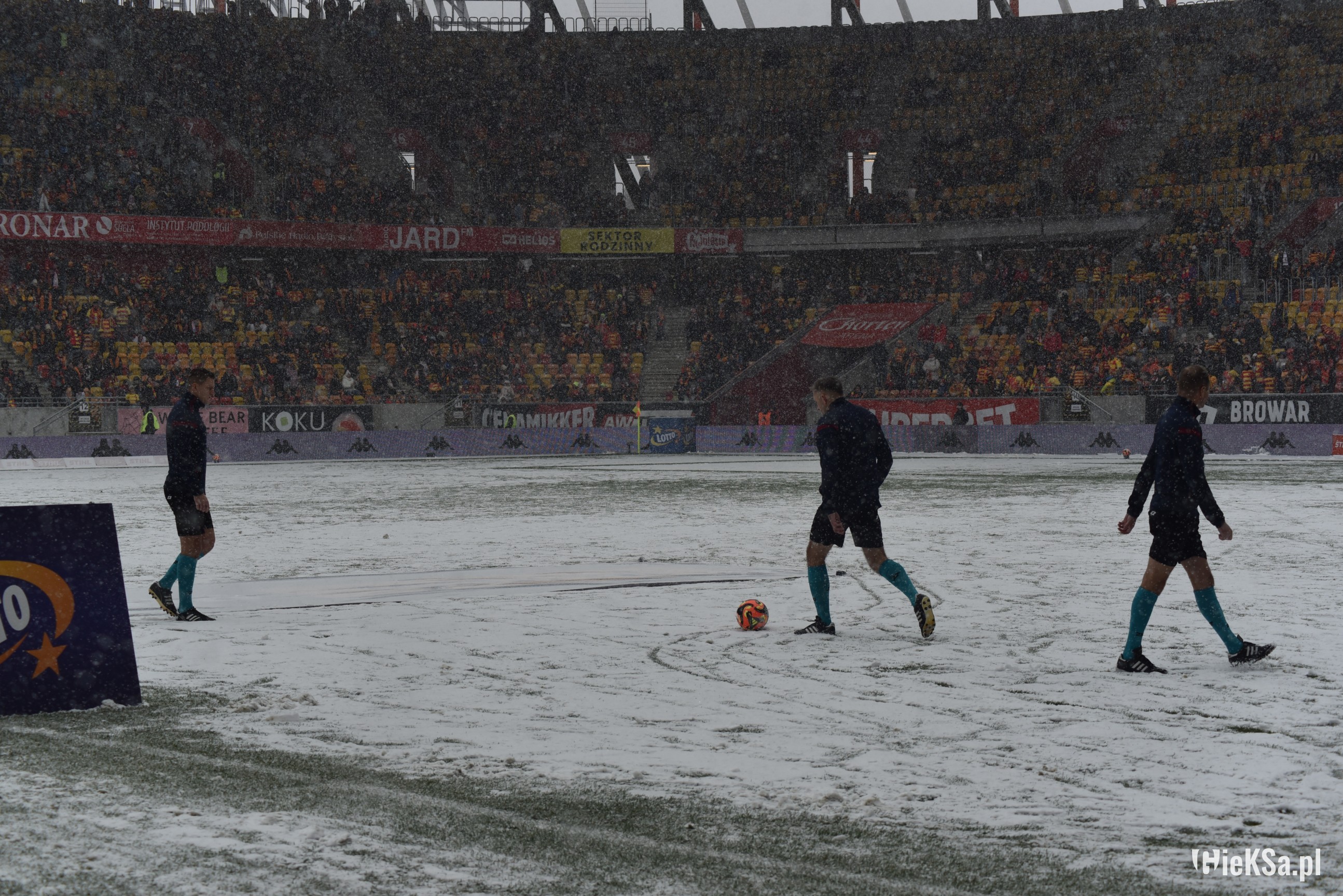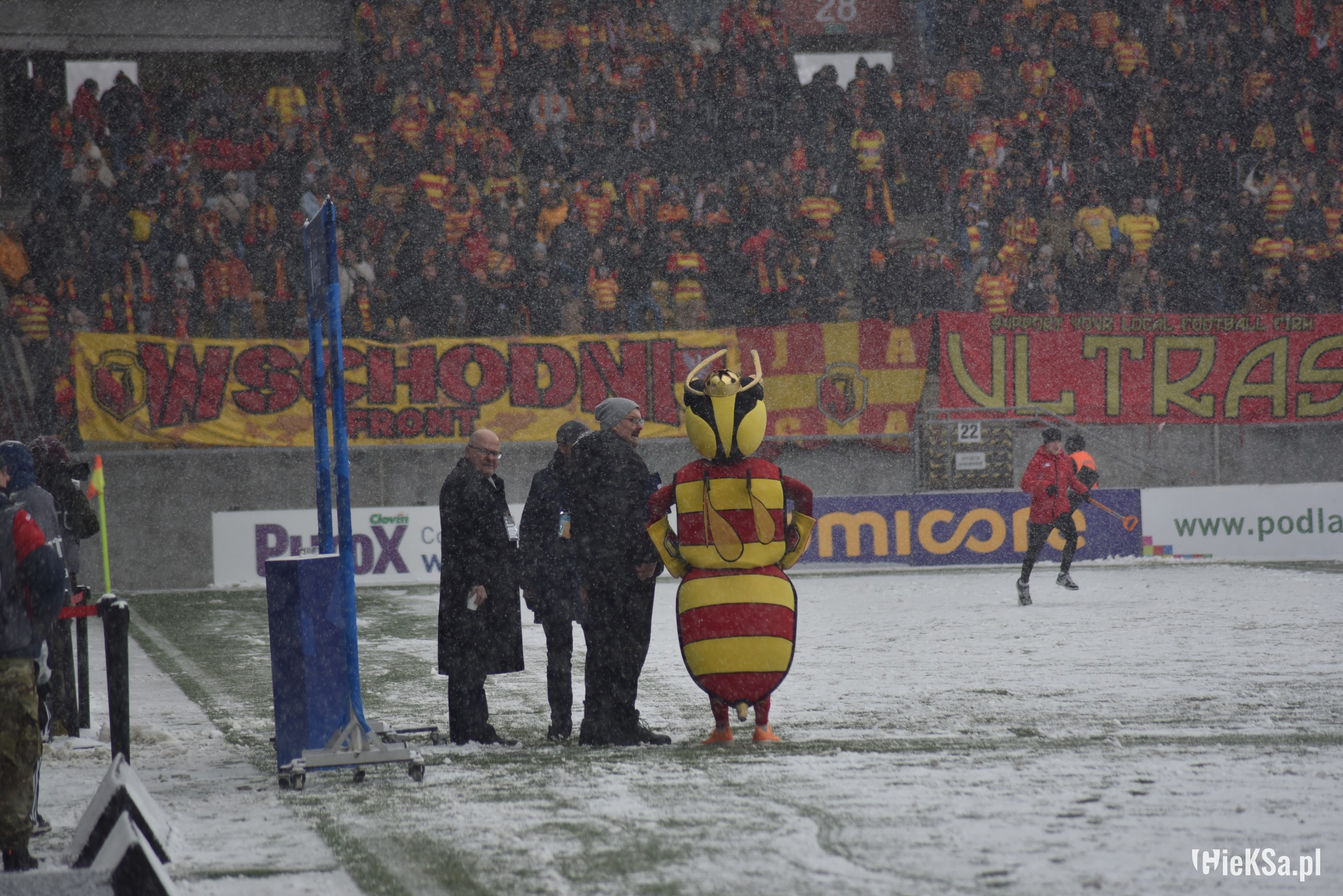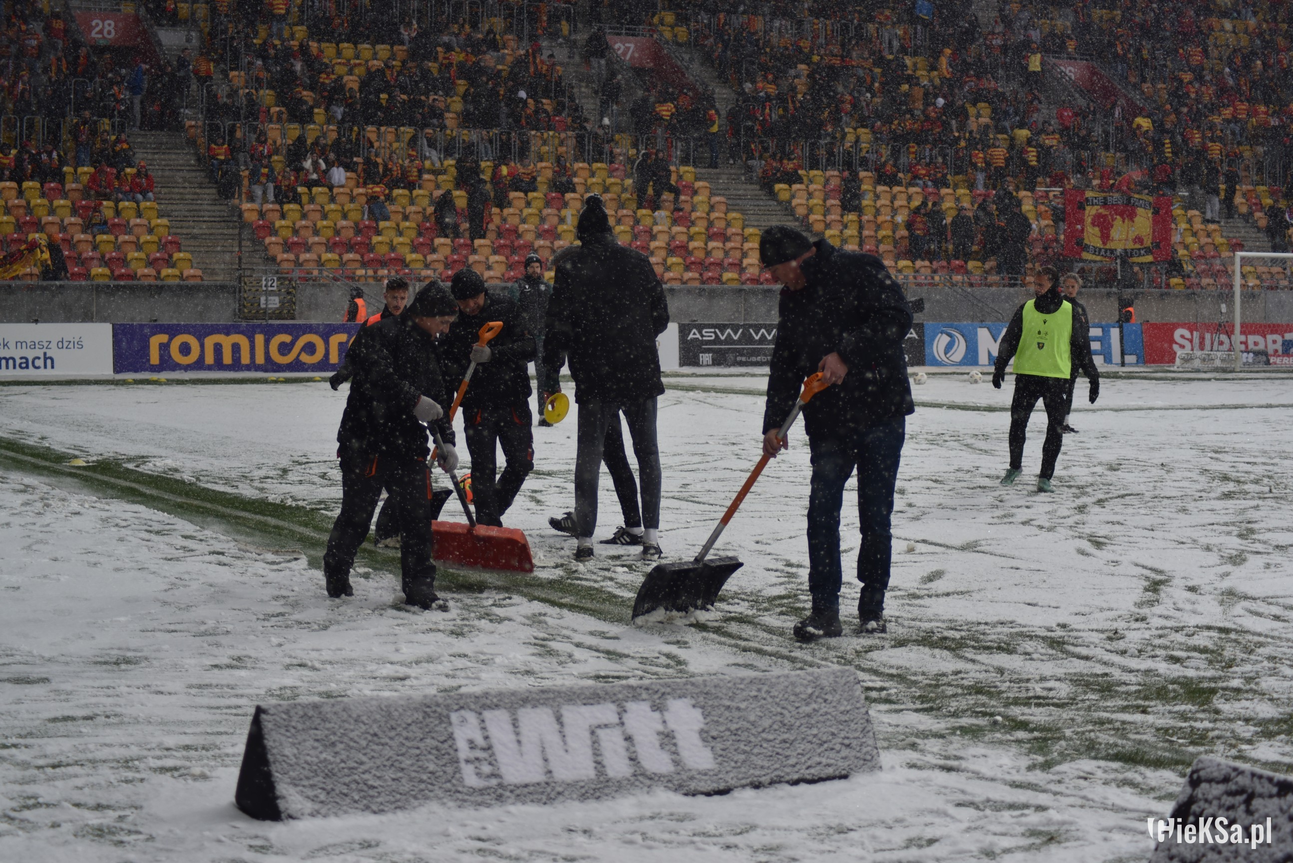 Zapraszamy do zimowej galerii z odwołanego meczu GieKSy z Jagiellonią w Białymstoku. Piłkarze GKS Katowice po decyzji o tym, że nie będzie spotkania, podeszli pod szczelnie wypełniony sektor gości i podziękowali fanom z Katowic za tak liczne stawienie się na meczu. Przy okazji podarowali swoje koszulki najmłodszym wyjazdowiczom.