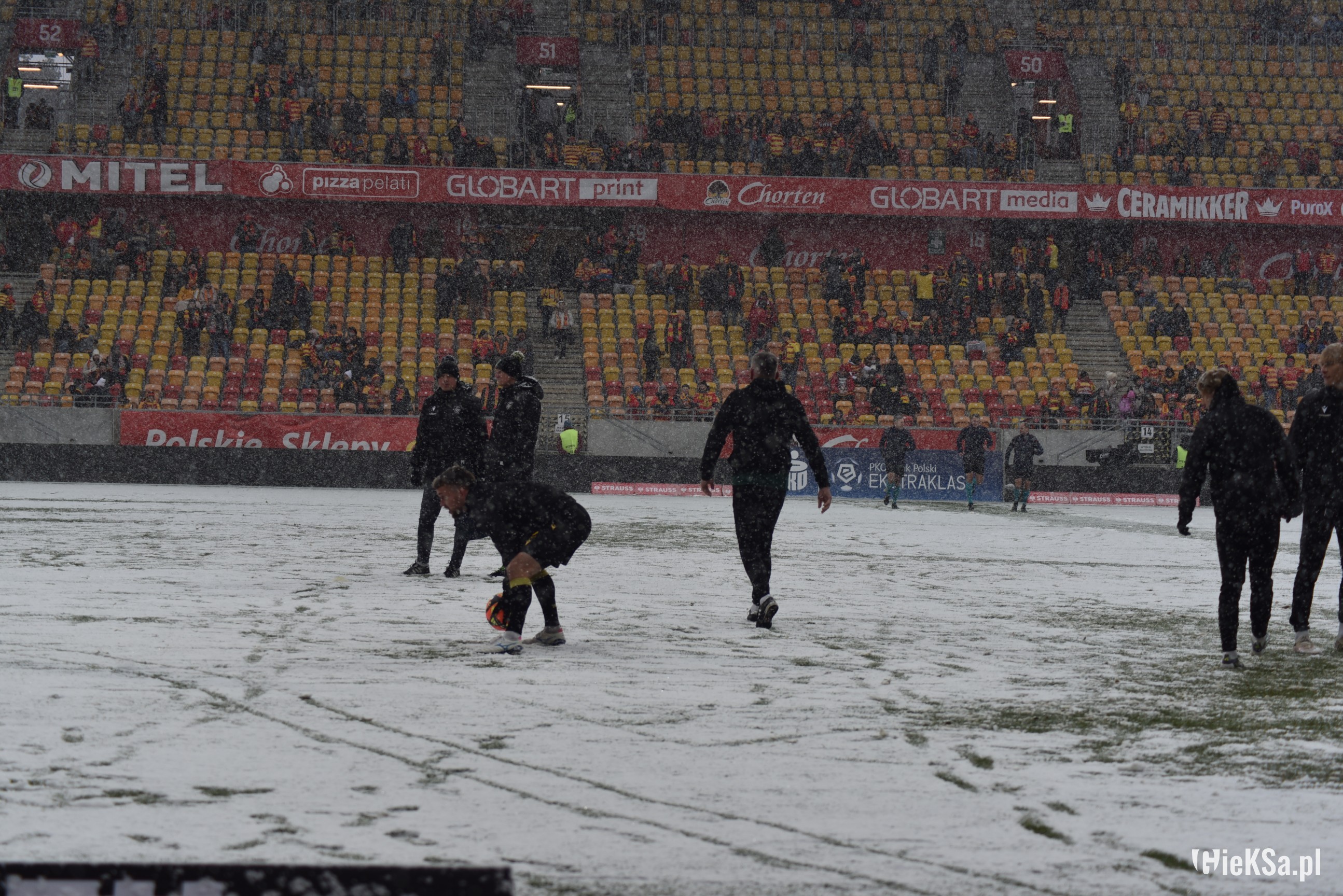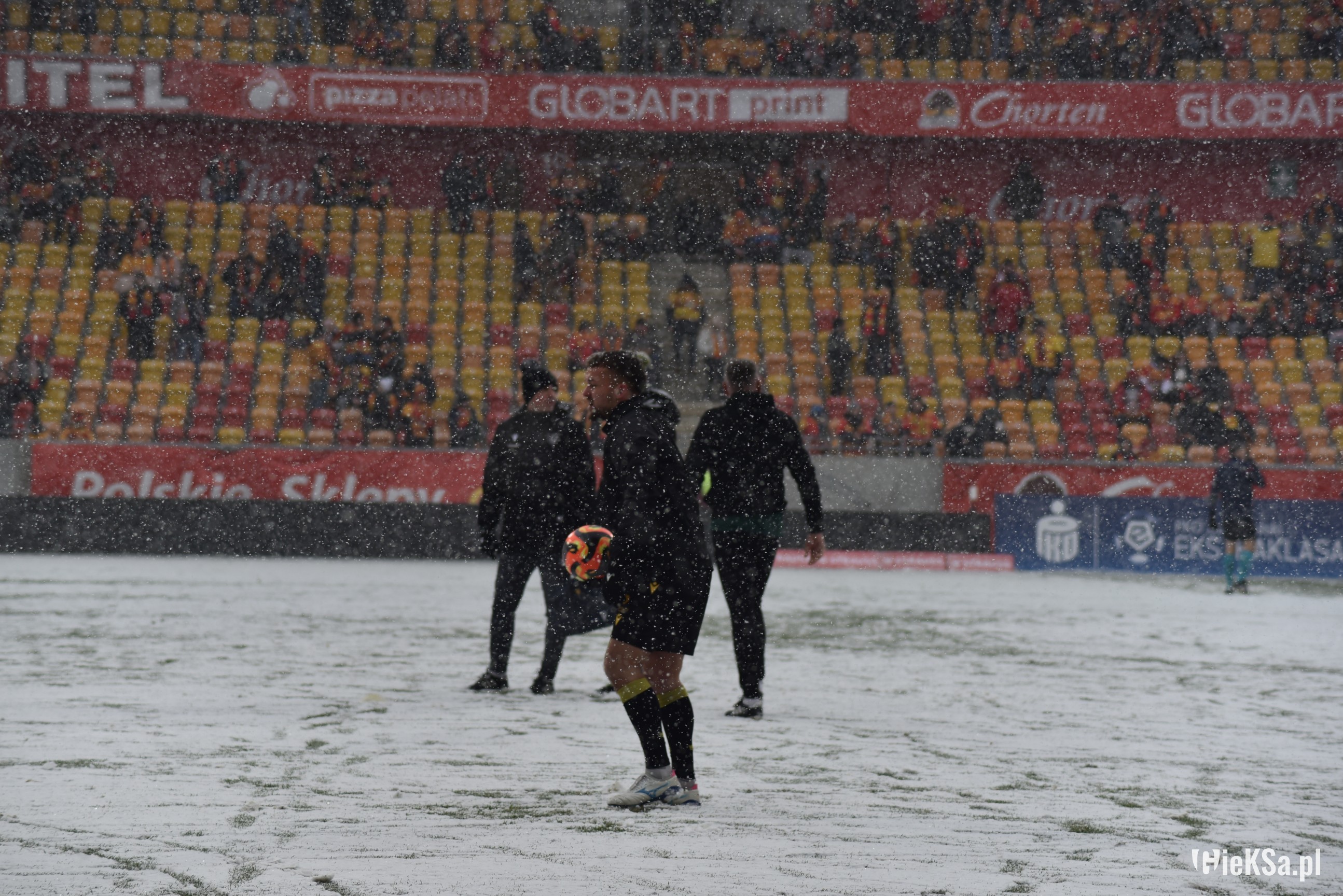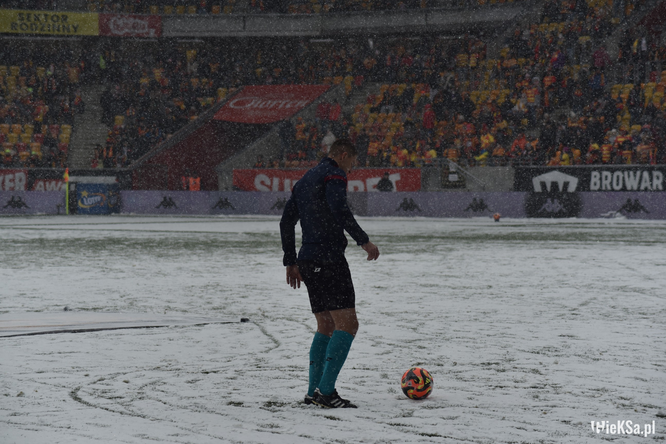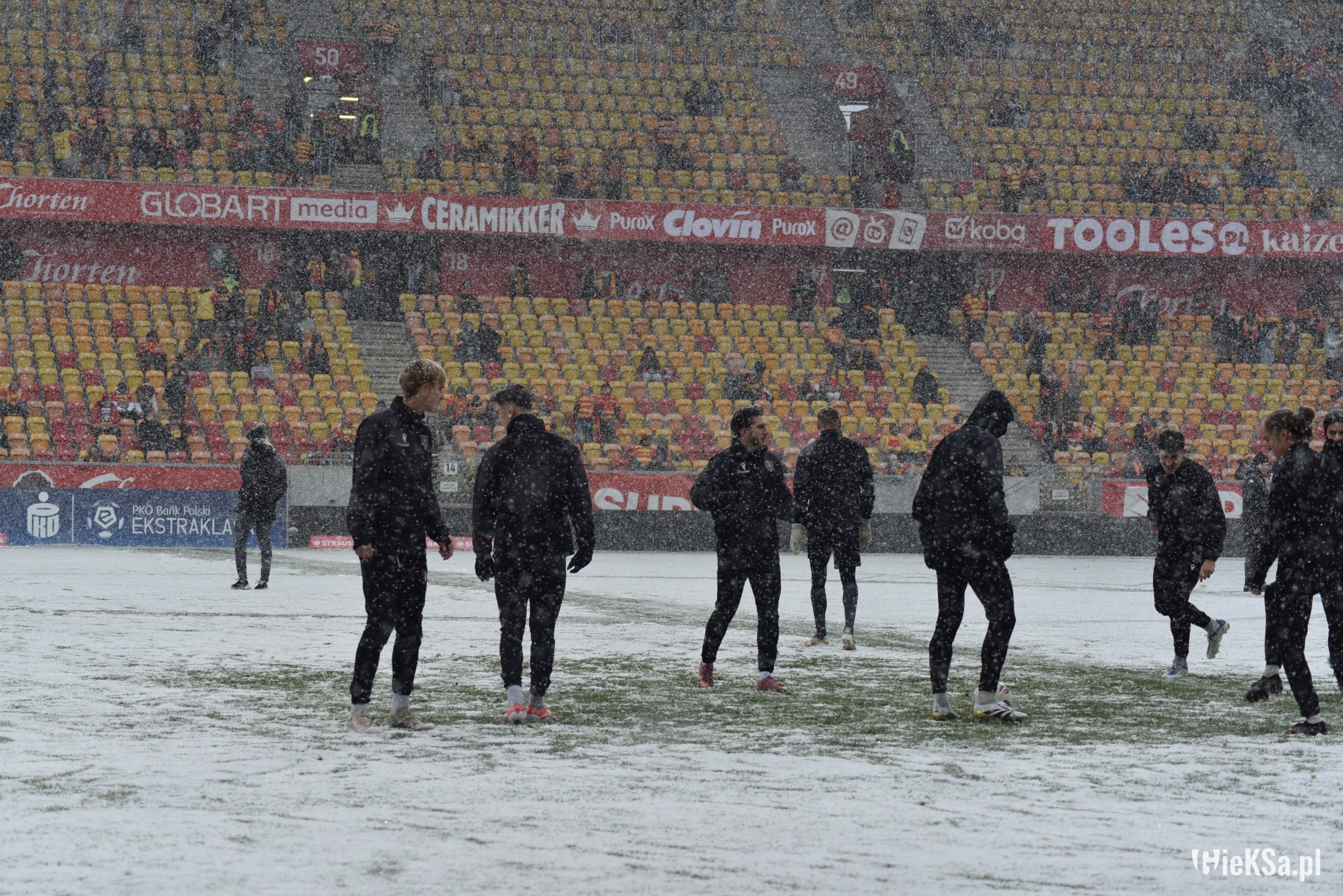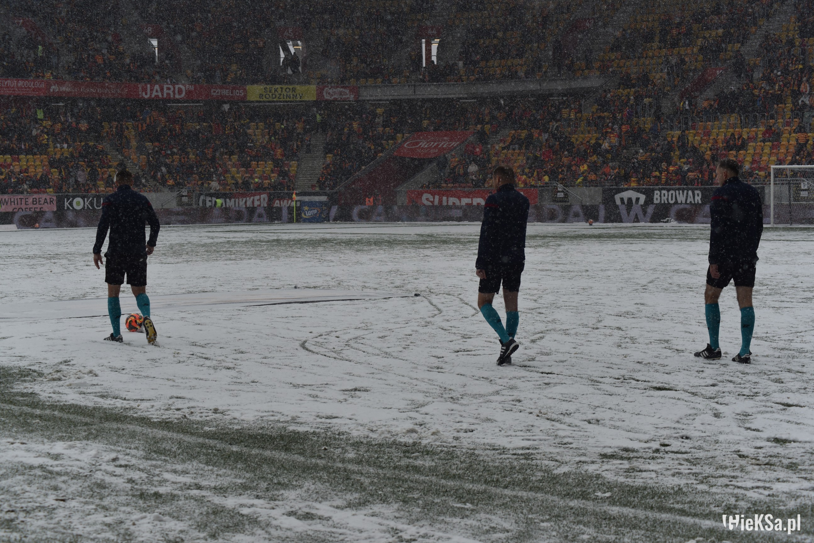 Zapraszamy do zimowej galerii z odwołanego meczu GieKSy z Jagiellonią w Białymstoku. Piłkarze GKS Katowice po decyzji o tym, że nie będzie spotkania, podeszli pod szczelnie wypełniony sektor gości i podziękowali fanom z Katowic za tak liczne stawienie się na meczu. Przy okazji podarowali swoje koszulki najmłodszym wyjazdowiczom.