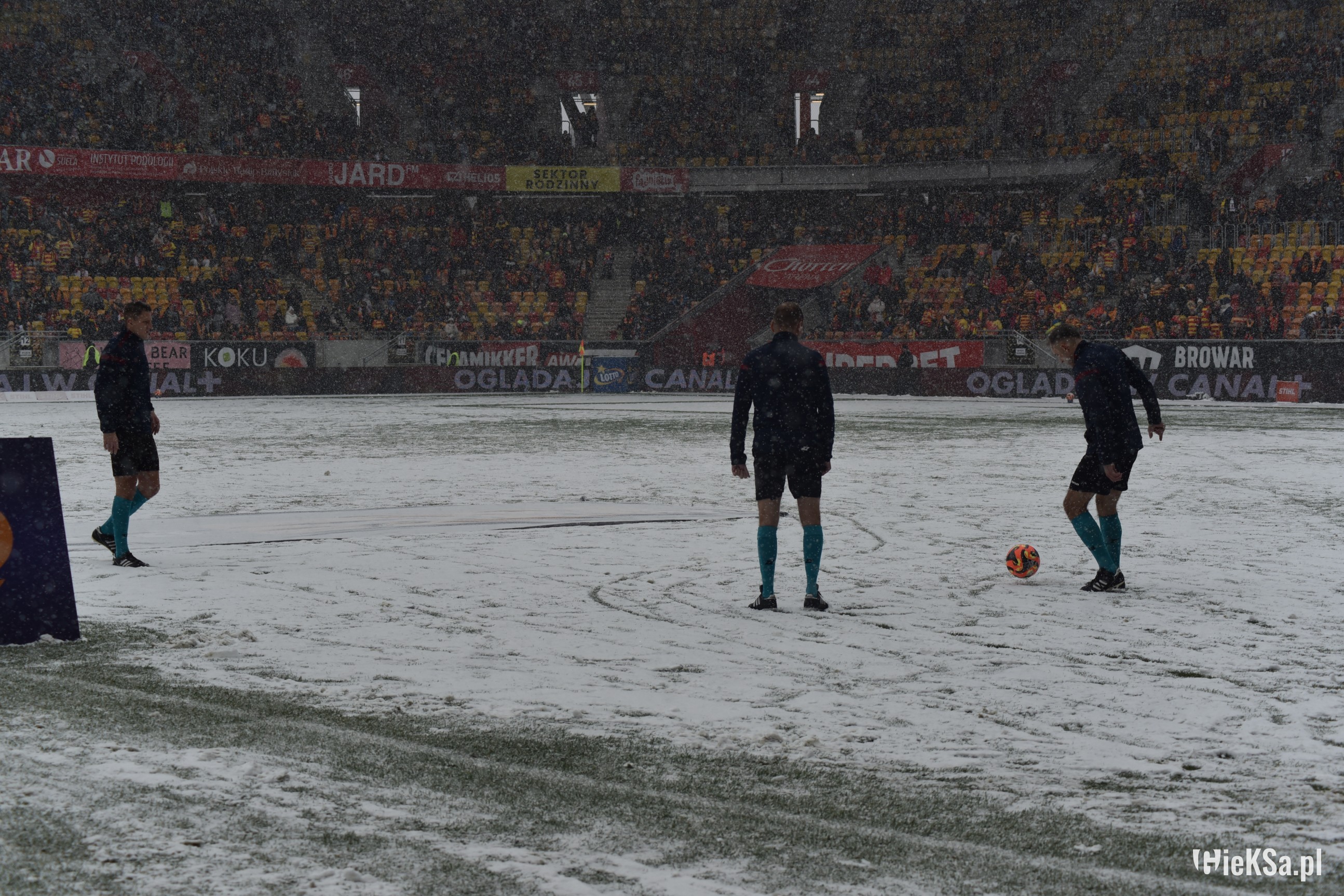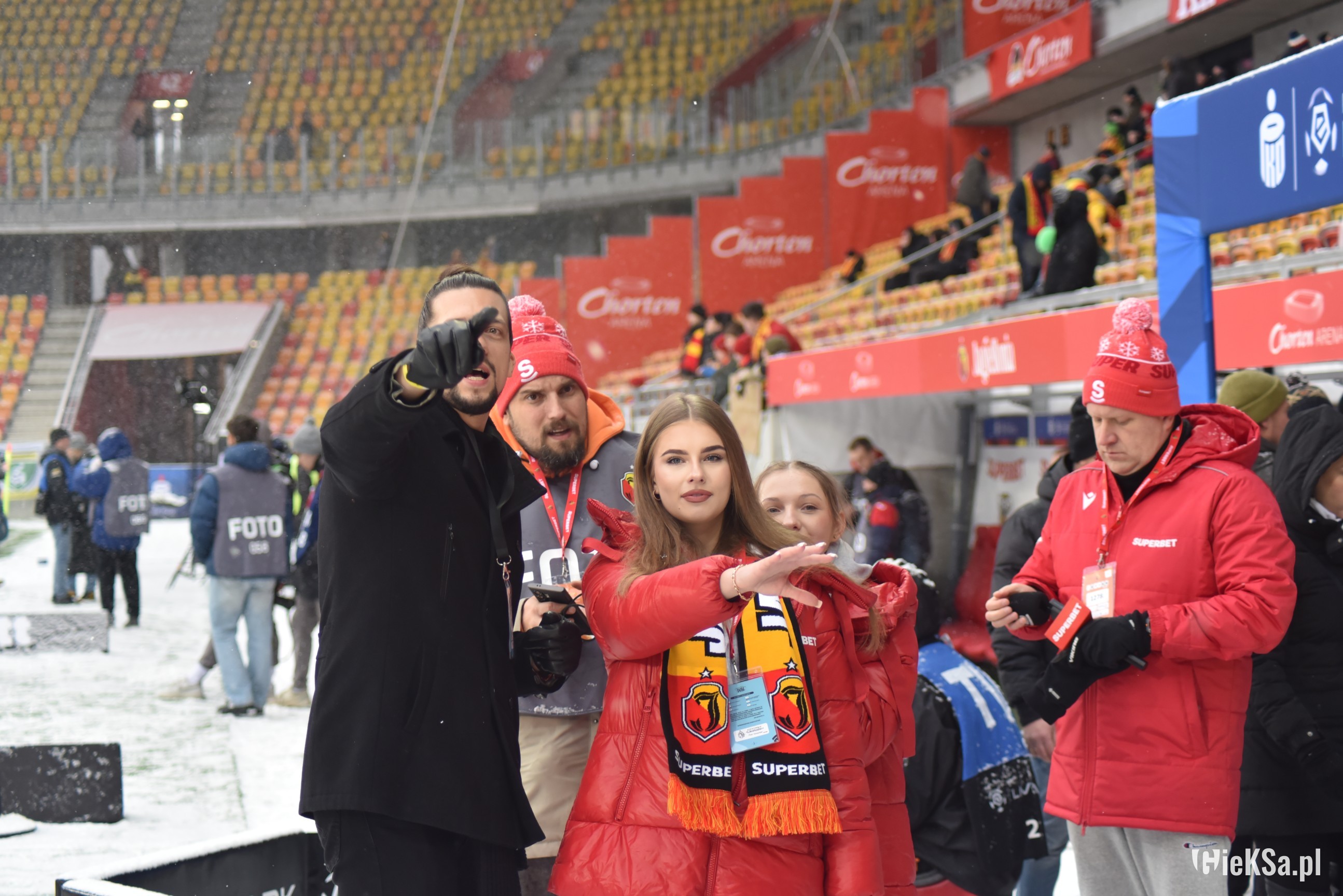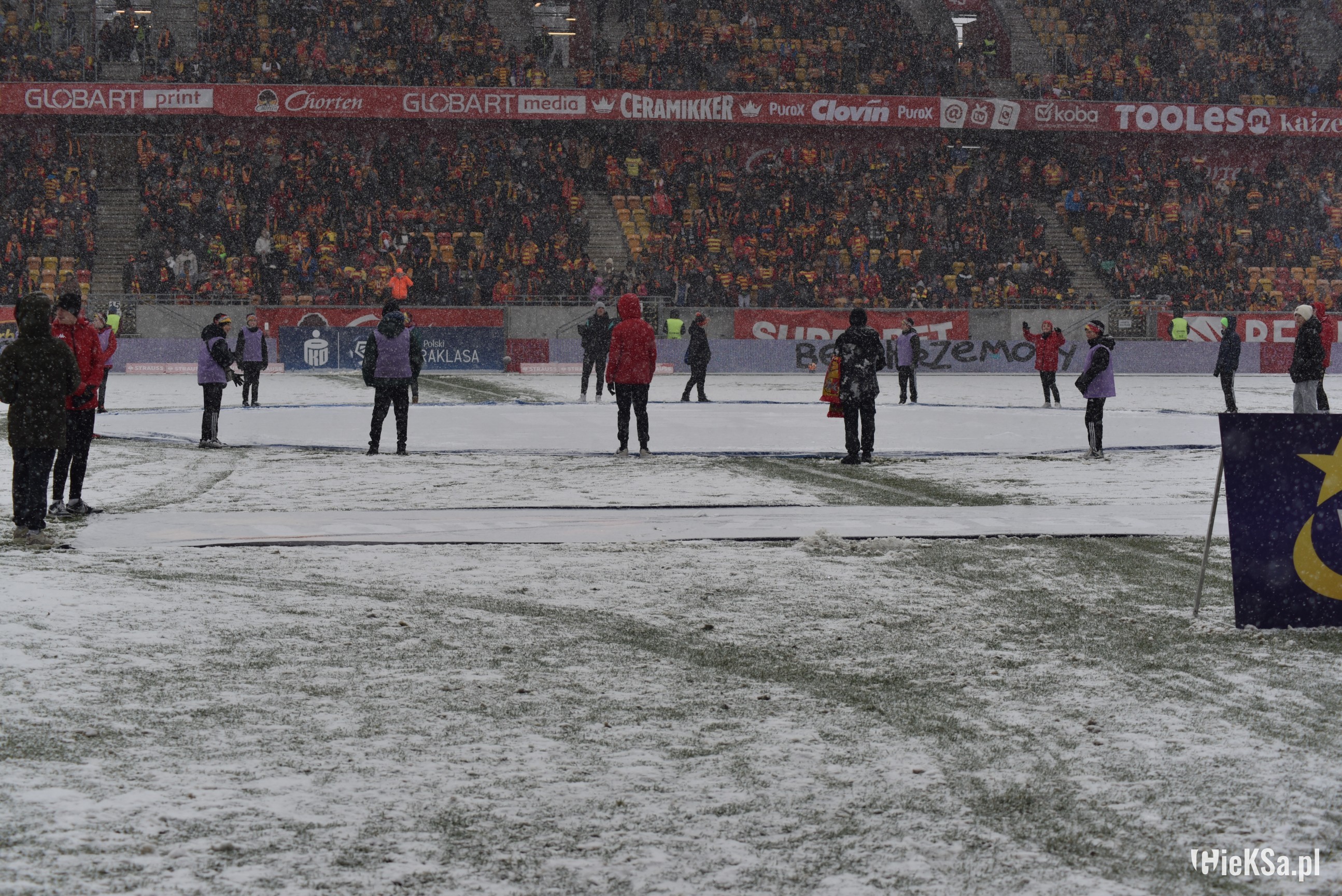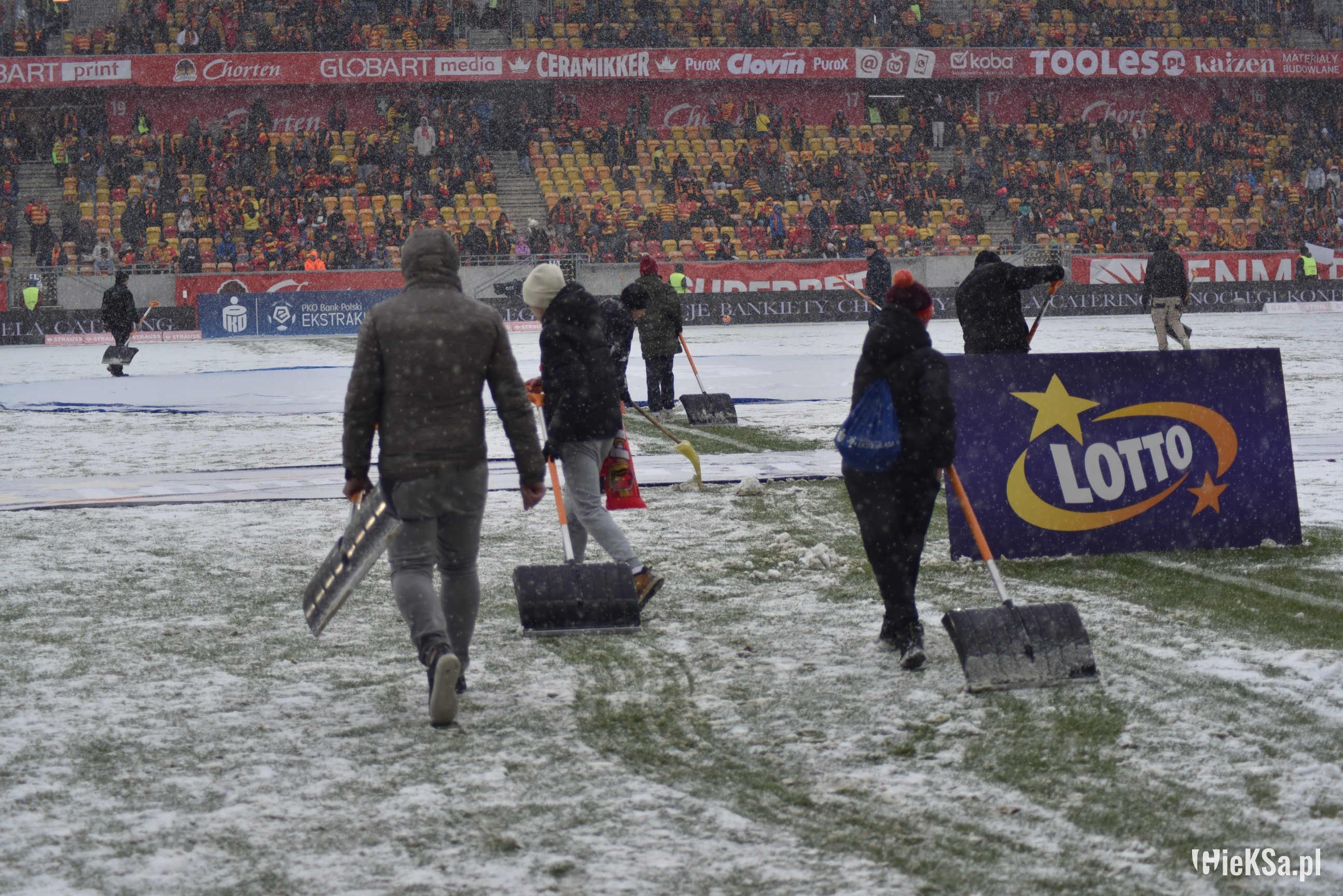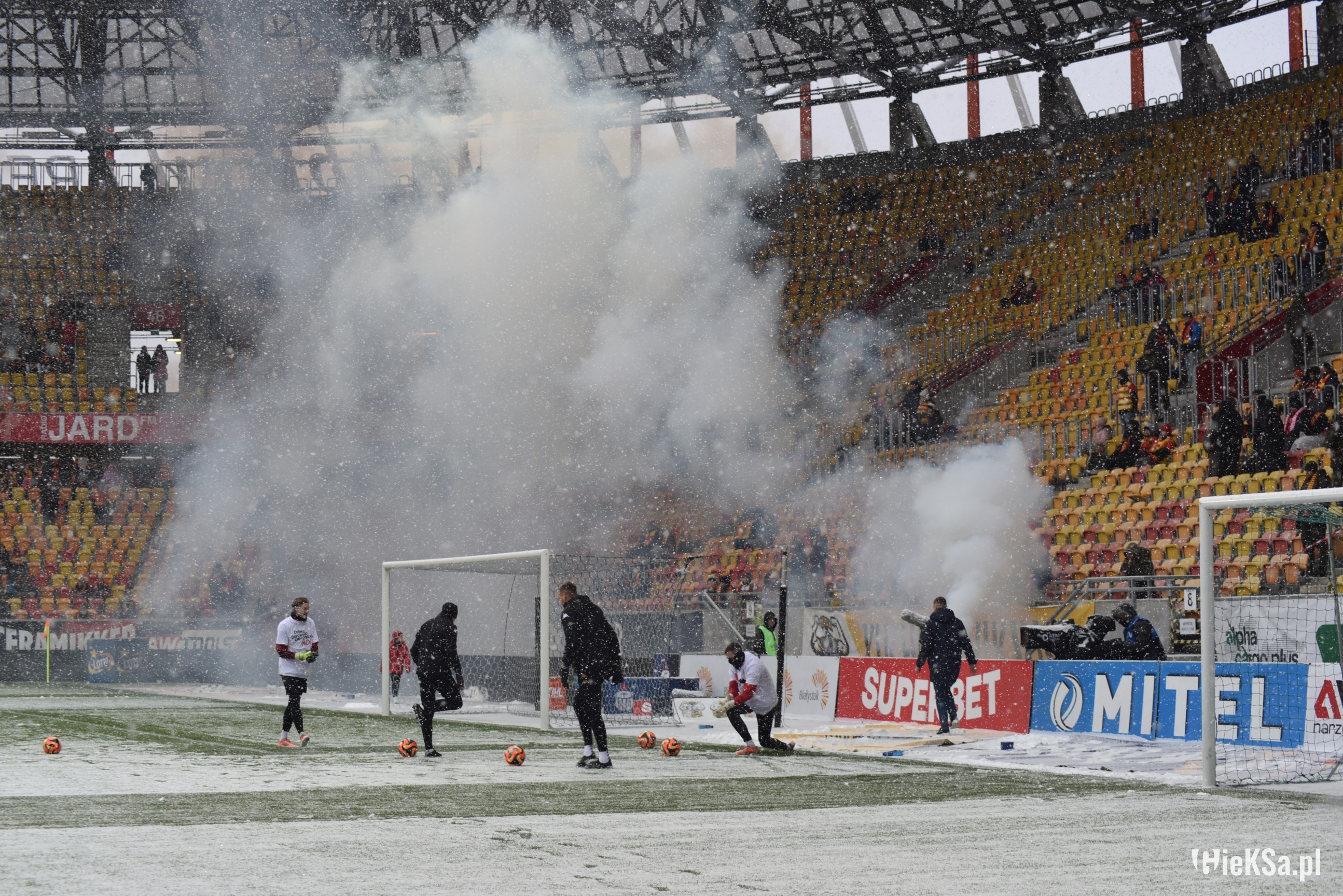 Zapraszamy do zimowej galerii z odwołanego meczu GieKSy z Jagiellonią w Białymstoku. Piłkarze GKS Katowice po decyzji o tym, że nie będzie spotkania, podeszli pod szczelnie wypełniony sektor gości i podziękowali fanom z Katowic za tak liczne stawienie się na meczu. Przy okazji podarowali swoje koszulki najmłodszym wyjazdowiczom.
