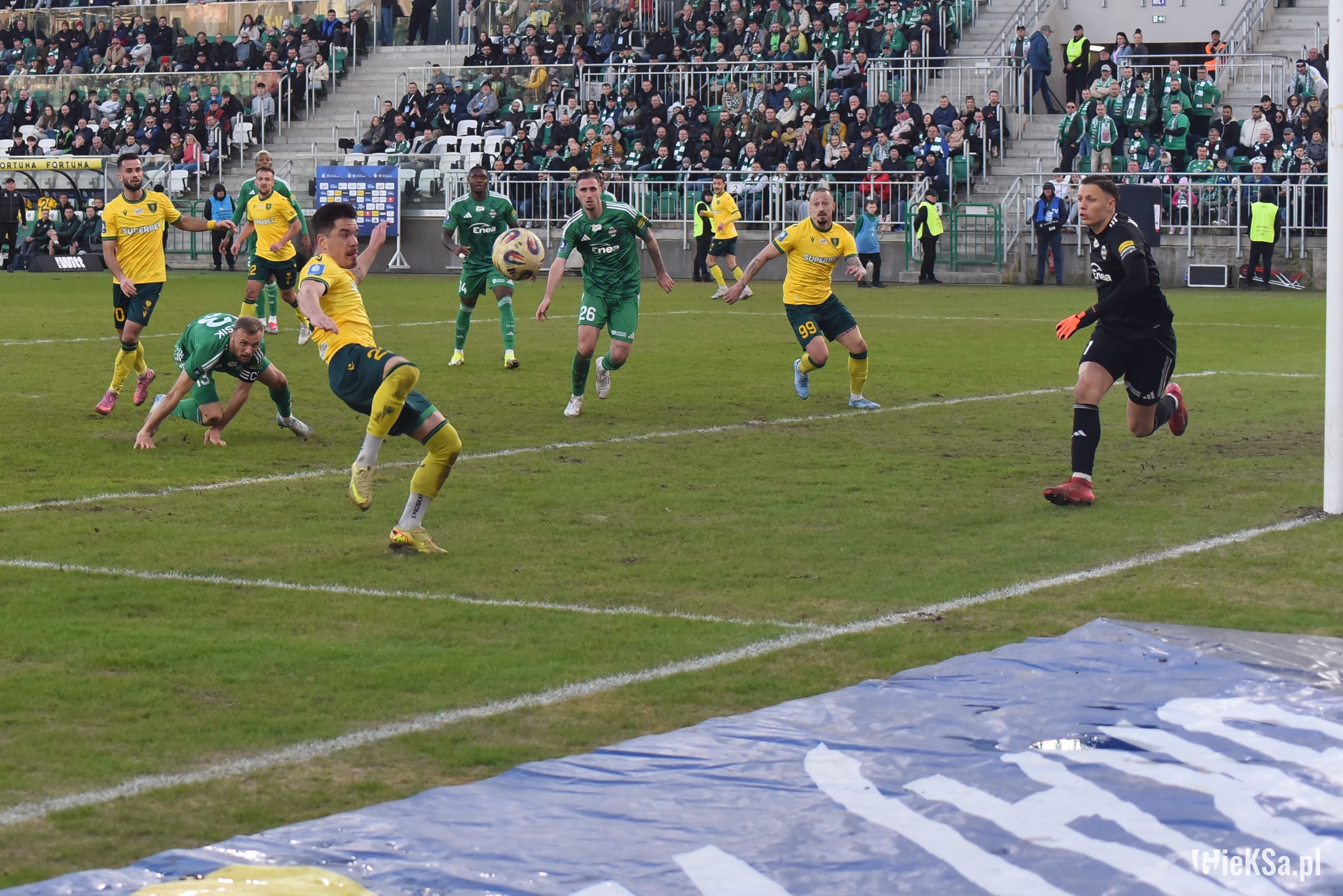 Wracając do symbolicznego Lukasa. GieKSa ma swój sposób na stałe fragmenty i to „drugie tempo”, o którym trener mówił w poprzednim sezonie jest cały czas praktykowane. Lukas Klemenz zachował się w tej sytuacji jak rasowy napastnik, dostał piłkę prostopadłą, a nie centrę z boku boiska i z pierwszej – w sytuacji sam na sam – strzelił gola. Schematy.
