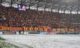 Po wejściu na stadion zobaczyłem taką właśnie oprószoną murawę – niezasypaną. Białawo-zieloną lub zielonkawo-białą. Typowy widok, gdy mamy pierwsze opady śniegu w roku lub też szron po mroźnej nocy. Białe gunwo (że tak zejdziemy z romantycznej wersji o puchu) ciągle jednak z białostockiego nieba spadało. I w pewnym momencie rzeczywiście murawa stała się dość biała. Nie przeszkodziło to jednak obu drużynom oraz sędziom rozgrzewać się. Kibice wypełniali stadion, zwłaszcza ci z Jagiellonii jeszcze przed meczem głośno dopingując swój zespół. Sympatycy GieKSy powoli zaczęli wchodzić na sektor gości i też dali znać o sobie. Przyznam, że nie myślałem w ogóle o tym, że mecz może się nie odbyć. Nie miałem takiego konceptu w głowie.